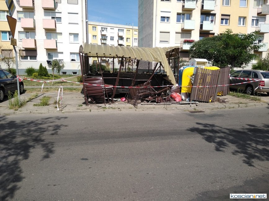 AKTUALIZACJA :: W niedzielny poranek ktoś wjechał w śmietnik przy ulicy Wyzwolenia w Kościanie.