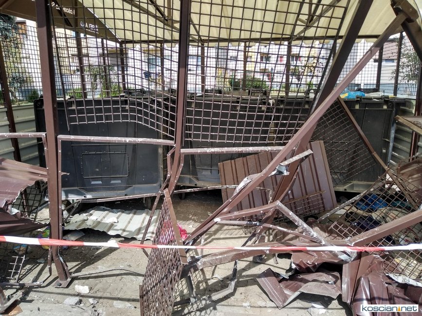Zdjęcia uszkodzonego śmietnika wykonano w niedzielę po południu.