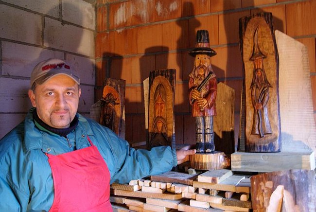 - Jeszcze w szkole zawodowej kupiłem dłuta z myślą o późniejszym warsztacie. Tak sobie leżały i czekały. Przywiozłem kiedyś kawałek drewna olchowego. Zacząłem coś dłubać. Wyrzeźbiłem rycerza wielkości trzydziestu – czterdziestu centymetrów z podstawką. Nigdy się go nie pozbędę. Tak mi się to rzeźbienie spodobało, że popukałem się w głowę. Straciłem trzy lata – wspomina Maciej Szymczak. - Później były koń, Indianin, Piastowie i dziewczyna. Ta ostatnia rzeźba była prezentem na walentynki dla mojej sympatii. Niestety, nie spodobała się.