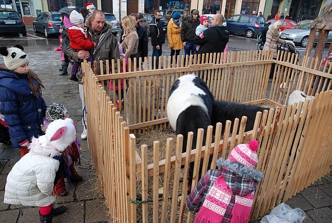 Najwięcej radości miały dzieci, które z ochotą karmiły i głaskały zwierzaki – kuca, kozy i królik. Przechodnie częstowani byli cukierkami przez dwa gwiazdory. W tle płynęły znane i lubiane kolędy i świąteczne piosenki. Niestety szopka stała tylko przez kilka godzin...