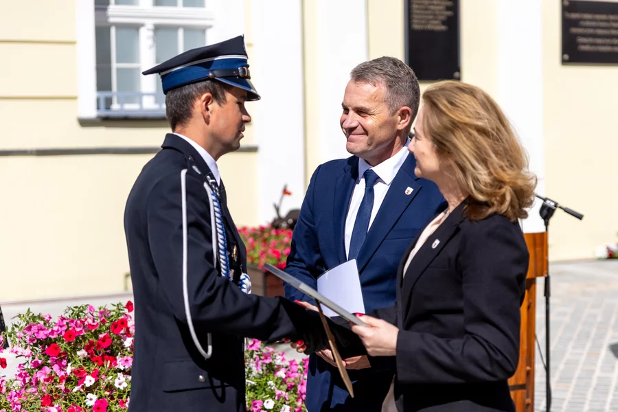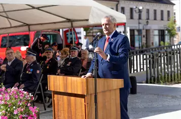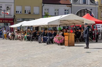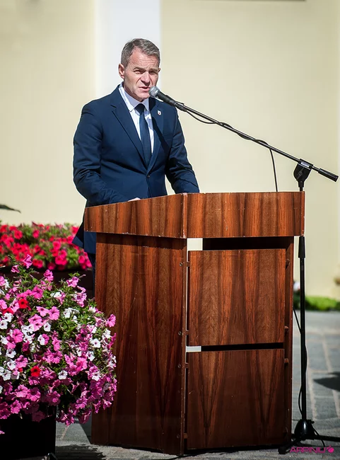 Uroczystość na rynku zakończyły wystąpienia gości: senatora Wojciecha Ziemniaka, ministra Wiesława Szczepańskiego, starosty Artura Opasa.