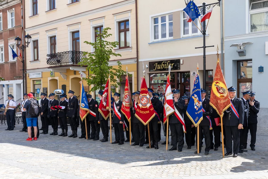 Jubileuszowe uroczystości rozpoczął przemarsz sprzed remizy przy ulicy Bączkowskiego do kościoła farnego, w którym odprawiono mszę w intencji strażaków. Po nabożeństwie na Rynku odbył się uroczysty apel.