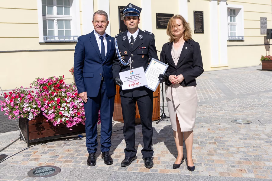 Jako pierwszy wystąpił i przypomniał historię jednostki gospodarz miejsca burmistrz Sławomir Kaczmarek. Kościańscy samorządowcy przekazali prezesowi OSP okolicznościowy adres i czek na 5 tysięcy złotych przekazanych jednostce przez miasto.