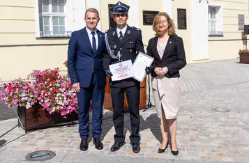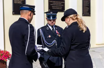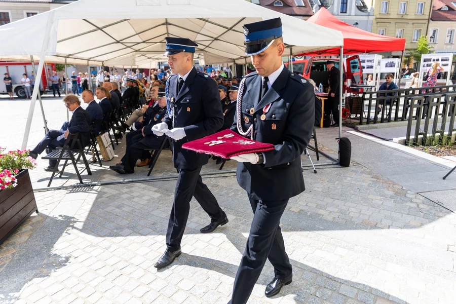 Następnie wręczano medale za Zasługi dla Pożarnictwa, odznaki „Strażak Wzorowy” i „Za wysługę lat” oraz odznaki „Młodzieżowa Drużyna Pożarnicza”.