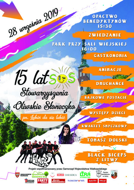 W najbliższą sobotę, 28 września Stowarzyszenie Oliwskie Słoneczko zaprasza na wspólne świętowanie jubileuszu. W parku przy świetlicy wiejskiej obędzie się jubileuszowy rodzinny piknik „Lubiń dla się lubić”. Na godz. 15.30 zaplanowano zwiedzania Opactwa Benedyktynów. Piknik rozpocznie się o godz. 16. Będzie można skorzystać z dmuchańców i stoisk gastronomicznych. Na dzieci czekać będą animacje. Na scenie pojawią się: litewski zespół Black Biceps, Tomasz Dolski, kwartet smyczkowy, wokaliści zespołu Słoneczna Gala Biesiadna i zespół taneczny Alemana. Pojawią się także bajkowe postacie.